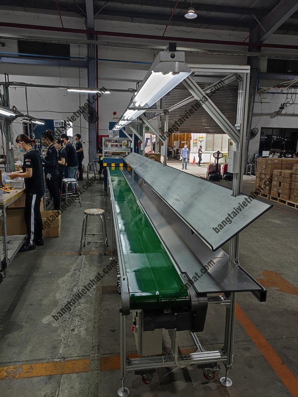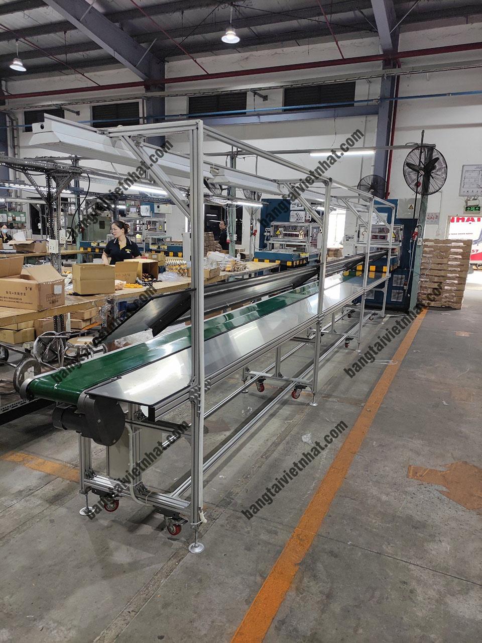 Băng tải là một hệ thống được sử dụng phổ biến trong các nhà máy sản xuất giúp gia tăng năng xuất và tối ưu các công đoạn. Để tối đa hóa lợi ích của hệ thống băng tải, chúng tôi liên tục cải tiến công năng của nó, đặc biệ là việc phát triển loại băng tải kết hợp bàn thao tác đã trở thành một giải pháp hiệu quả và tiên tiến. Hệ thống này cung cấp sự tự động hóa và tính linh hoạt trong việc vận chuyển và xử lý hàng hóa, giúp nâng cao hiệu suất sản xuất, tiết kiệm thời gian và giảm chi phí lao động.