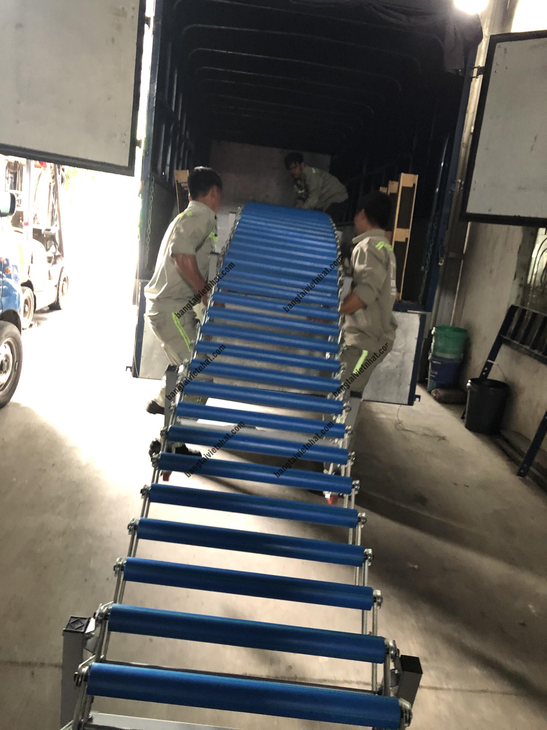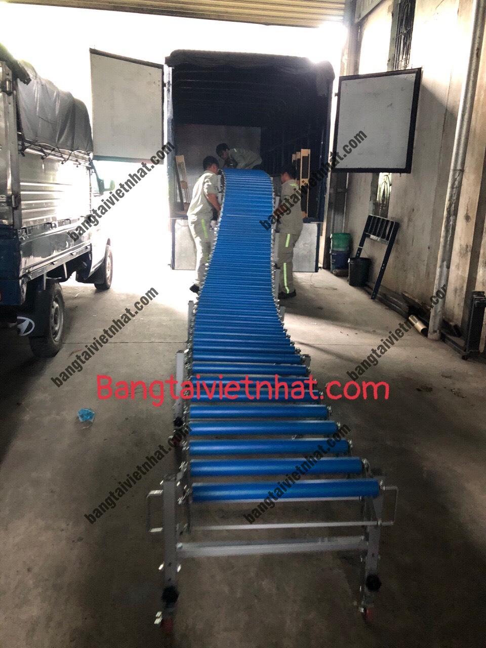 Băng chuyền con lăn xếp gọn thích hợp với dây chuyền đóng gói, bao, hộp, thùng carton, pallet. Loại băng tải này có thể kéo dài hoặc thu ngắn hay được thao tác để tạo thành đường cong tùy ý phù hợp với các dạng địa hình trong các nhà máy công nghiệp.